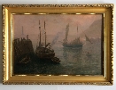 A fishing boat returning to Whitby in a late evening calm. Not always like that on the Yorkshire coast. A restful painting by one of our favourite Victorian artists, who much more often painted very vigorous marine scenes.