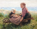 A good and typical example of Edith Hume's work. Although an English artist, her painting was always more in a Dutch rather than, say, Newlyn style of the later Victorian period. Generally of figures on the shore and often with children, her work was well sought after in her lifetime and remains very well collected today. In fact the tag on the frame states 'Ellis' rather than the correct 'Edith' - quite often a mistake like this is seen on an original label - a new one provided if required.