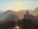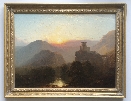 An atmospheric view at sunset of Invergarry Castle and Loch Oich in Scotland's Great Glen. Built in 1602 on Creagan an Fhithich (Raven's Rock) the seat of the clan MacDonell of Glengarry, Invergarry castle was sacked by Duke of Cumberland after the Jacobite risings 1746. A good sized example, dated 1884 signed and annotated on the back of the canvas as usual for G B Sticks. NB. the full-sized image is taken in sunlight.