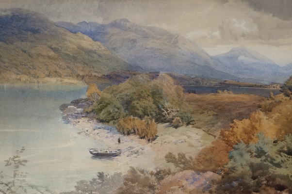 A delightful and restful watercolour sketch of this well-known loch in Argyll and Bute, Scottish highlands, with the ruins of Kilchurn castle in the distance. Thomas Miles Richardson is perhaps our favourite artist from the North East of England - always watercolour work of quality. Signed and inscribed, 'On Loch Awe', lower right.
