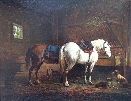 Horses and Dogs in a Barn